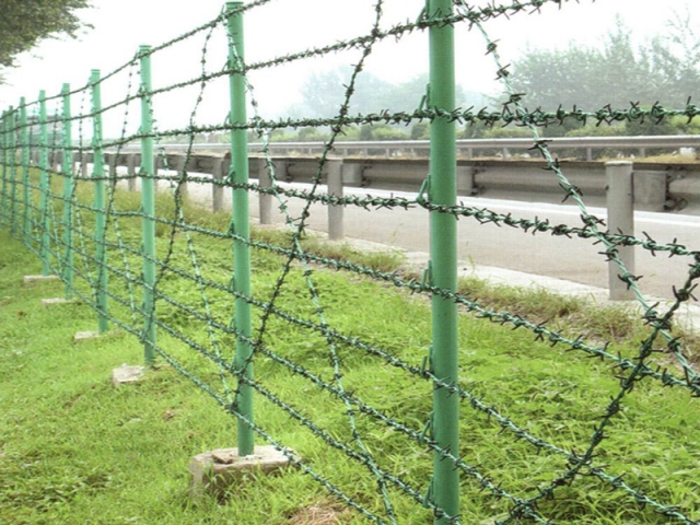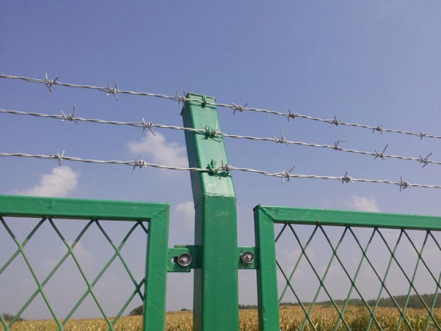 刺鐵絲柵欄是帶刺的鐵絲連接而成的防護隔離柵欄,刺鋼絲是低碳鋼絲經過轉輪機編織旋轉而成單股或者雙股的帶刺鋼絲,刺鋼絲的表面處理方式分為:熱鍍鋅、電鍍鋅、熱浸塑三種方式。